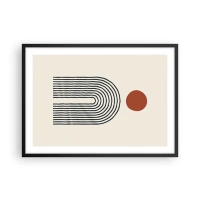 Poster in einem schwarzem Rahmen - Modernes abstraktes Muster mit Linien und einem roten Kreis - 70x50cm - Magnetismus von Formen und Farben - Moderne Wanddekoration für Wohnzimmer und Schlafzimmer ARTTOR