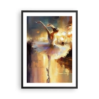 Poster in einem schwarzem Rahmen - Eine Ballerina im goldenen Licht der Bühne - 50x70cm - Wunder auf der Straße - Moderne Wanddekoration für Wohnzimmer und Schlafzimmer ARTTOR