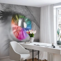 Maßgeschneiderte Fototapete Premium Sand - Schau dir die Welt in Farbe an - Abstraktion, Buntes Auge, 3D