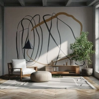 Fototapete Premium Sand - Dynamische, ausdrucksstarke Linien auf beigem Hintergrund. - 100x70cm - Komposition – Looptanz - Moderne Wanddekoration für Wohnzimmer und Schlafzimmer ARTTOR