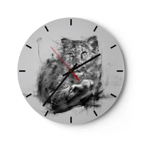 Wanduhr - Glasuhr - Porträt eines Tigers in Schwarz-Weiß-Abstraktion - 30x30cm - Ja, ich höre aufmerksam zu - Moderne Wanddekoration für Wohnzimmer, Küche und Schlafzimmer ARTTOR