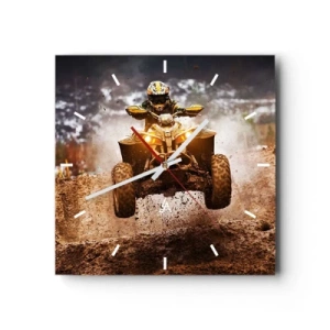 Wanduhr - Glasuhr - Extremes Quadfahren im schlammigen Gelände - 30x30cm - Kein Risiko kein Spaß - Moderne Wanddekoration für Wohnzimmer und Schlafzimmer ARTTOR