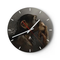 Wanduhr - Glasuhr - Ein nachdenklicher Schimpanse vor dunklem Hintergrund - 30x30cm - Sicherlich ein Denker - Moderne Wanddekoration für Wohnzimmer, Küche und Schlafzimmer ARTTOR