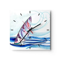 Wanduhr - Glasuhr - Ein Surfer, der in einer abstrakten Aquarellkomposition auf den Wellen reitet - 30x30cm - Mit dem Wind im Rhythmus der Wellen - Moderne Wanddekoration für Wohnzimmer und Schlafzimmer ARTTOR