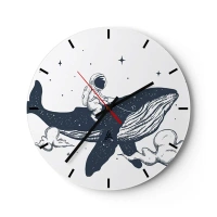 Wanduhr - Glasuhr - Astronaut reitet auf einem Wal im Weltraum - 30x30cm - Weltraumabenteuer - Moderne Wanddekoration für Wohnzimmer, Küche und Schlafzimmer ARTTOR