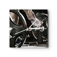 Wanduhr - Glasuhr - Hanteln und die Hände eines Sportlers bereiten sich auf das Training vor - 30x30cm - Herausforderung angenommen! - Moderne Wanddekoration für Wohnzimmer und Schlafzimmer ARTTOR