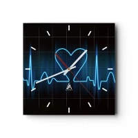 Wanduhr - Glasuhr - Eine Lebenslinie mit einem Herz auf einem medizinischen Überwachungshintergrund in Blautönen. - 30x30cm - Im Rhythmus des Herzens - Moderne Wanddekoration für Wohnzimmer und Schlafzimmer ARTTOR