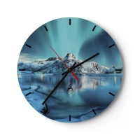 Wanduhr - Glasuhr - Aurora Borealis über schneebedeckten Bergen und einem zugefrorenen See - 30x30cm - Lichtnacht - Moderne Wanddekoration für Wohnzimmer, Küche und Schlafzimmer ARTTOR