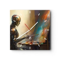 Wanduhr - Glasuhr - Ein Roboter, der im künstlerischen Stil auf einer Leinwand malt - 30x30cm - Die Kunst der Zukunft - Moderne Wanddekoration für Wohnzimmer und Schlafzimmer ARTTOR
