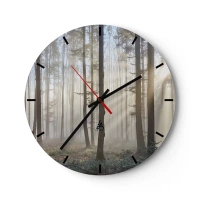 Wanduhr - Glasuhr - Nebel, der durch die Bäume im Wald scheint - 30x30cm - Der Nebel ist auch aufgewacht - Moderne Wanddekoration für Wohnzimmer, Küche und Schlafzimmer ARTTOR
