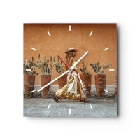 Wanduhr - Glasuhr - Eine Frau im Boho-Stil mit Töpfen voller Kakteen im Hintergrund. - 30x30cm - Hippie-Stil - Moderne Wanddekoration für Wohnzimmer und Schlafzimmer ARTTOR