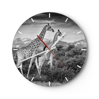 Wanduhr - Glasuhr - Ein Schwarzweißfoto von zwei Giraffen in der Savanne. - 30x30cm - Hohe Sphären in Afrika - Moderne Wanddekoration für Wohnzimmer, Küche und Schlafzimmer ARTTOR
