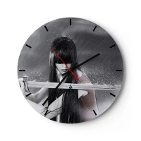 Wanduhr - Glasuhr - Frau mit Schwert im Regen vor dramatischem Hintergrund - 30x30cm - Schön und gefährlich - Moderne Wanddekoration für Wohnzimmer, Küche und Schlafzimmer ARTTOR