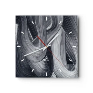 Wanduhr - Glasuhr - Schwarz-Weiß-Abstraktion mit dynamischen Pinselstrichen. - 30x30cm - Die Fließfähigkeit der Realität - Moderne Wanddekoration für Wohnzimmer und Schlafzimmer ARTTOR