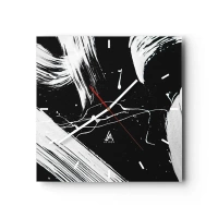 Wanduhr - Glasuhr - Abstrakte weiße Striche auf schwarzem Hintergrund - 30x30cm - Dunkelheit durchbrechen - Moderne Wanddekoration für Wohnzimmer und Schlafzimmer ARTTOR