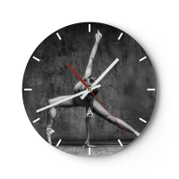 Wanduhr - Glasuhr - Eine Ballerina in dynamischer Pose vor dem Hintergrund einer rauen Industriewand. - 30x30cm - Das Ideal des Gleichgewichts - Moderne Wanddekoration für Wohnzimmer, Küche und Schlafzimmer ARTTOR