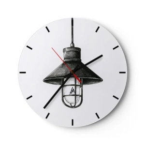 Wanduhr - Glasuhr - Schwarze Industrie-Pendelleuchte auf weißem Hintergrund - 30x30cm - Wie vor Jahren… - Moderne Wanddekoration für Wohnzimmer, Küche und Schlafzimmer ARTTOR
