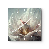 Wanduhr - Glasuhr - Eine zarte weiße Blume mit subtilen goldenen Akzenten - 30x30cm - Sie blüht alle hundert Jahre einmal - Moderne Wanddekoration für Wohnzimmer und Schlafzimmer ARTTOR