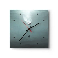 Wanduhr - Glasuhr - Eine Figur, eingetaucht in tiefes, türkisfarbenes Wasser - 30x30cm - In den Armen des Ozeans - Moderne Wanddekoration für Wohnzimmer und Schlafzimmer ARTTOR