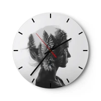 Wanduhr - Glasuhr - Profil einer Frau mit einem Pflanzenmotiv im Hintergrund - 30x30cm - Dame des Kiefernwaldes - Moderne Wanddekoration für Wohnzimmer, Küche und Schlafzimmer ARTTOR