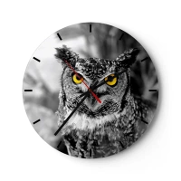 Wanduhr - Glasuhr - Eine Eule mit gelben Augen auf einem schwarz-weißen Hintergrund - 30x30cm - Nichts wird sich verstecken - Moderne Wanddekoration für Wohnzimmer, Küche und Schlafzimmer ARTTOR