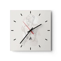Wanduhr - Glasuhr - Eine minimalistische Skizze einer weiblichen Silhouette vor hellem Hintergrund. - 30x30cm - Wie ein sensibles Instrument - Moderne Wanddekoration für Wohnzimmer und Schlafzimmer ARTTOR