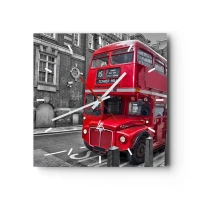 Wanduhr - Glasuhr - Big Ben und ein Bus mit britischer Flagge vor schwarz-weißem Hintergrund - 30x30cm - Stolz und toll - Moderne Wanddekoration für Wohnzimmer und Schlafzimmer ARTTOR