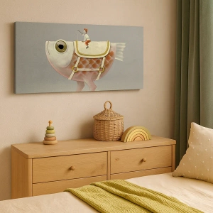 Bild auf Leinwand - Leinwandbild - Reiter auf einem surrealen Fisch - 40x40 cm