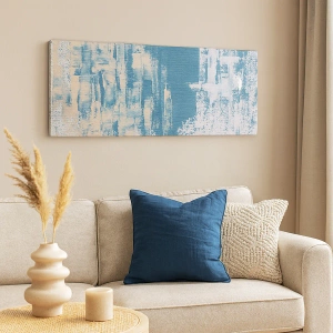 Die Leinwand wird über den Rahmen gespannt. Die Seiten und Kanten werden gedruckt, um das Bild fortzusetzen. Das Bild ist fertig zum Aufhängen an der Wand. Jedes Produkt hat einen am Rahmen befestigten Anhänger und ein Montageset (Schraube + Stift).