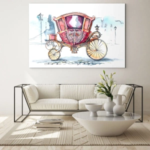 Glasbild - Bild auf glas - Eine elegante Kutsche im Aquarellstil vor einem Straßenhintergrund - 70x50cm - Zur Hochzeit oder zum Abschlussball? - Moderne Wanddekoration für Wohnzimmer und Schlafzimmer ARTTOR