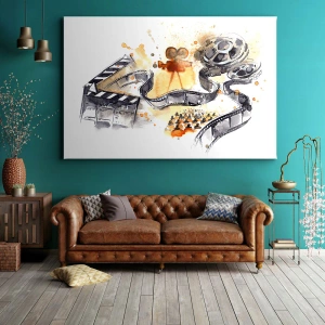 Die Leinwand wird über den Rahmen gespannt. Die Seiten und Kanten werden gedruckt, um das Bild fortzusetzen. Das Bild ist fertig zum Aufhängen an der Wand. Jedes Produkt hat einen am Rahmen befestigten Anhänger und ein Montageset (Schraube + Stift).