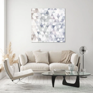 Glasbild - Bild auf glas - Geometrisches Dreiecksmuster in neutralen Grau- und Beigetönen - 50x70cm - Im Rhythmus auf drei - Moderne Wanddekoration für Wohnzimmer und Schlafzimmer ARTTOR