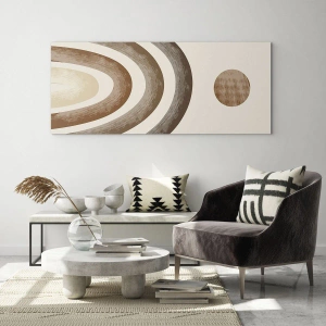 Glasbild - Bild auf glas - Abstrakte Streifen und Kreise in Brauntönen - 70x50cm - In einer weit entfernten Galaxie - Moderne Wanddekoration für Wohnzimmer und Schlafzimmer ARTTOR