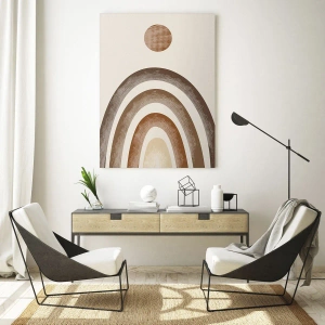 Diese Art von Kunstwerk passt perfekt in moderne Arrangements – sowohl minimalistische als auch dekorativere. Dank der verwendeten Farbpalette erwärmt das Bild den Innenraum und schafft eine Atmosphäre der Ruhe und Besinnung. Es eignet sich ideal für Räume wie das Wohnzimmer, Schlafzimmer oder Büro, in denen Harmonie und Ausgewogenheit entscheidend sind.