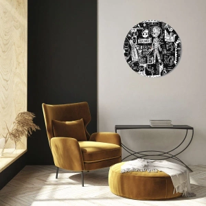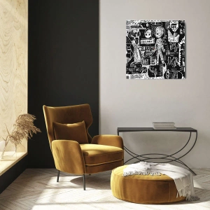 Wanduhr - Glasuhr - Von der Straßenkunst inspirierte Schwarz-Weiß-Collage - 30x30cm - Spirituelle Jugend des Gesetzes und der Freude - Moderne Wanddekoration für Wohnzimmer und Schlafzimmer ARTTOR