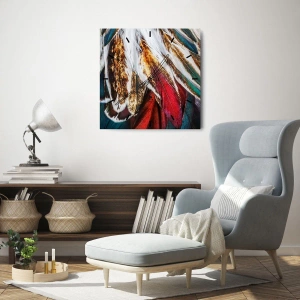 Wanduhr - Glasuhr - Nahaufnahme von bunten Federn in Braun-, Rot- und Grüntönen - 30x30cm - Geheimnisse des Fliegens - Moderne Wanddekoration für Wohnzimmer, Küche und Schlafzimmer ARTTOR