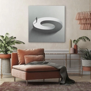 Bild auf Leinwand - Leinwandbild - Ein Mann auf einer grauen, abstrakten Struktur - 50x70cm - Und wie soll man davon klug werden - Moderne Wanddekoration für Wohnzimmer und Schlafzimmer ARTTOR