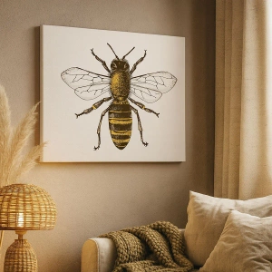 - Dieses Gemälde zeigt eine detailreiche Illustration einer Biene vor weißem Hintergrund. Ein stilvolles und subtiles Motiv, perfekt für harmonische Innenräume und Naturliebhaber.