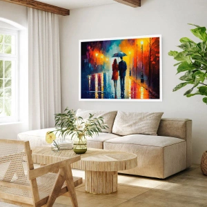 • Paar, Romantisch, Spaziergang, Menschen, Kunst, Für das Esszimmer, für den Flur, für das Wohnzimmer, für das Schlafzimmer, Blau, Orange, Gelb, Quadrat