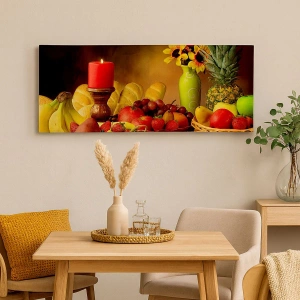Bild auf Leinwand - Leinwandbild - Stillleben mit Brot und Obst - 45x80 cm