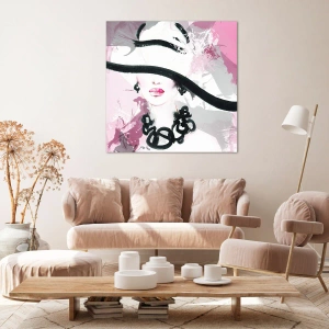 Bild auf Leinwand - Leinwandbild - Bildnis einer Dame in Schwarz und Pink - 30x30 cm