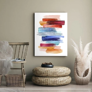 Die Leinwand wird über den Rahmen gespannt. Die Seiten und Kanten werden gedruckt, um das Bild fortzusetzen. Das Bild ist fertig zum Aufhängen an der Wand. Jedes Produkt hat einen am Rahmen befestigten Anhänger und ein Montageset (Schraube + Stift).