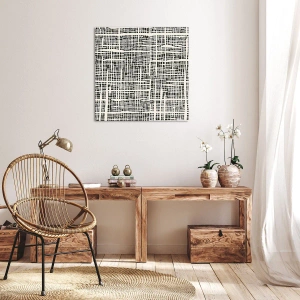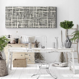 Bild auf Leinwand - Leinwandbild - Ein geometrisches Muster, das einem Gitter auf hellem Hintergrund ähnelt - 70x50cm - Gewebte Komposition - Moderne Wanddekoration für Wohnzimmer und Schlafzimmer ARTTOR