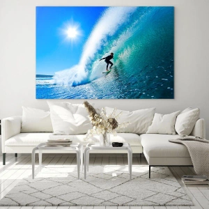 Wandbild – Durch das große Blau – Surfer auf einer Welle an einem sonnigen Tag