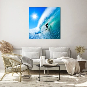 Glasbild - Bild auf glas - Surfer auf einer Welle an einem sonnigen Tag - 70x50cm - Durch das große Blau - Moderne Wanddekoration für Wohnzimmer und Schlafzimmer ARTTOR