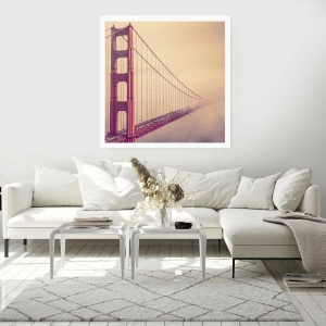 Poster - Eine Brücke im Nebel in Pastelltönen, ein Symbol für Eleganz und Frieden - 100x70cm - Zwischen Himmel und Erde - Moderne Wanddekoration für Wohnzimmer und Schlafzimmer ARTTOR