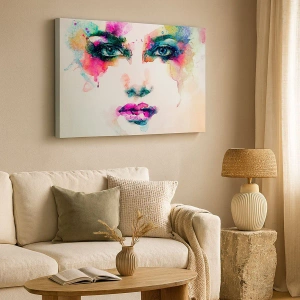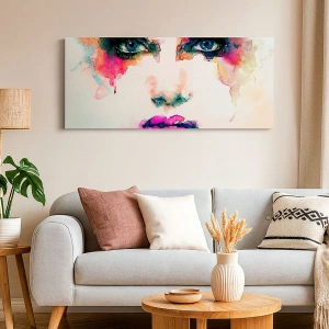 Bild auf Leinwand - Leinwandbild - Abstraktes Frauenporträt in intensiven Farben - 70x50cm - Ein mit einem Regenbogen gemaltes Porträt - Moderne Wanddekoration für Wohnzimmer und Schlafzimmer ARTTOR