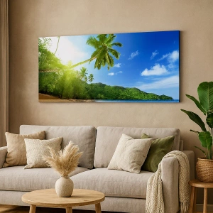 Das tropische Strandmotiv symbolisiert Freiheit, Entspannung und Naturverbundenheit und macht diesen Druck zur idealen Wahl für alle, die die Schönheit exotischer Landschaften und dezenter Innendekorationen zu schätzen wissen. Es ist auch eine tolle Geschenkidee für Reisebegeisterte und Sommerliebhaber.
