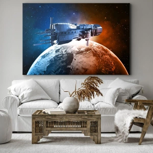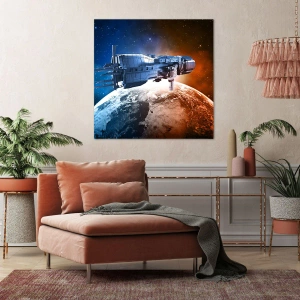 Die Leinwand wird über den Rahmen gespannt. Die Seiten und Kanten werden gedruckt, um das Bild fortzusetzen. Das Bild ist fertig zum Aufhängen an der Wand. Jedes Produkt hat einen am Rahmen befestigten Anhänger und ein Montageset (Schraube + Stift).