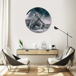 Die Uhr besteht aus 4 mm dickem Sicherheitsglas Glas. Die Herstellungstechnologie der Uhr entspricht der Sicherheitsklasse 2B2 gemäß der Norm PN-EN 12600: 2004, die Stoßfestigkeit garantiert. Die Uhr auf dem Glas ist bereit zu hängen - es hat einen Metallanhänger, einen Anhänger auf der Rückseite der Uhr und einen Schaumstoffabstand, der einen gleichmäßigen Abstand zwischen der Uhr und der Wand reguliert. Die Uhr hat einen geräuschlosen Schwimmmechanismus, der von einer 1,5-V-Batterie betrieben wird - AA-Batterie inbegriffen).